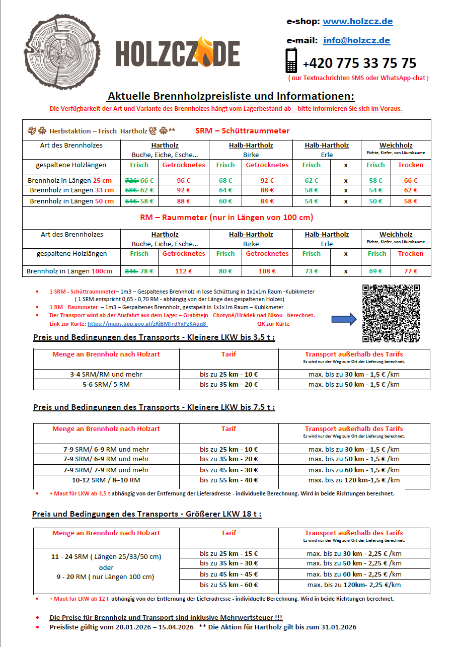 Brennholz gespalten SRM - Längen 25/33/50 cm